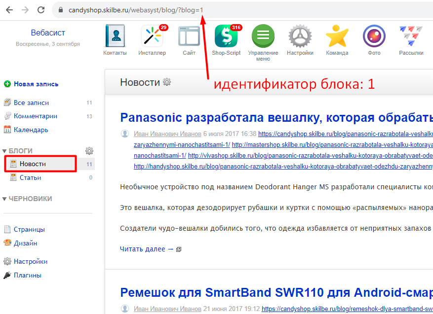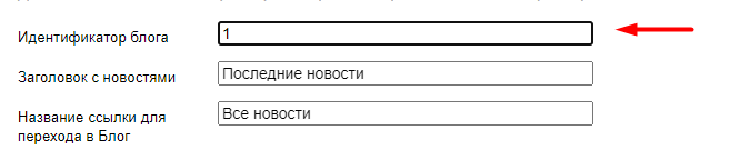 По умолчанию на витрину выводятся последние посты из всех блогов. Если необходимо вывести из определенного блога, необходимо воспользоваться опцией Идентификатор блога: