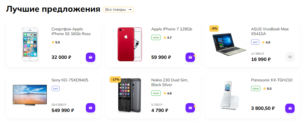 Вывод списков товаров
