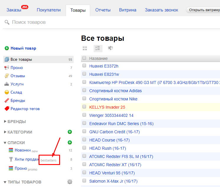 3) Идентификатор списка можно узнать в приложении Магазин - Товары - Списки: