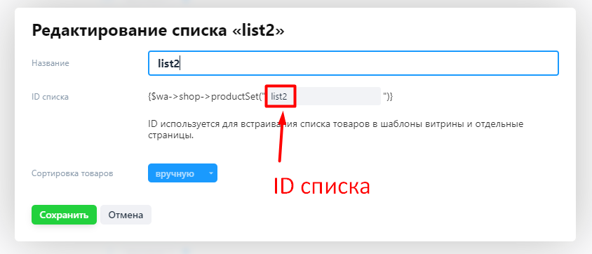 2. new - замените на ID нужного списка товара. Узнать ID списка товара можно в настройках списка: