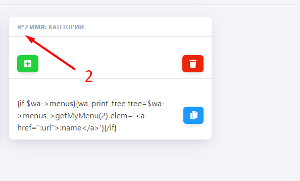 В опциях Идентификатор меню 1 и Идентификатор меню 2, необходимо указать ID меню, которое можно узнать в админке приложения: