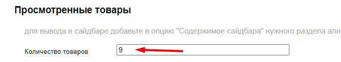 Для вывода последних просмотренных товаров в сайдбаре необходимо прописать алиас views в опции Содержимое сайдбара нужного раздела сайта:
