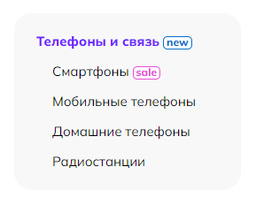 Также в настройках темы дизайна можно включить/отключить стикеры и количество товаров в категории, используя следующие опции в разделе "Блоки сайдбара" / "Список подкатегорий":