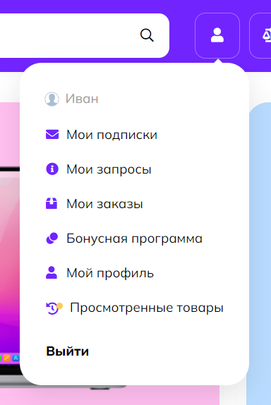 Иконки личного кабинета