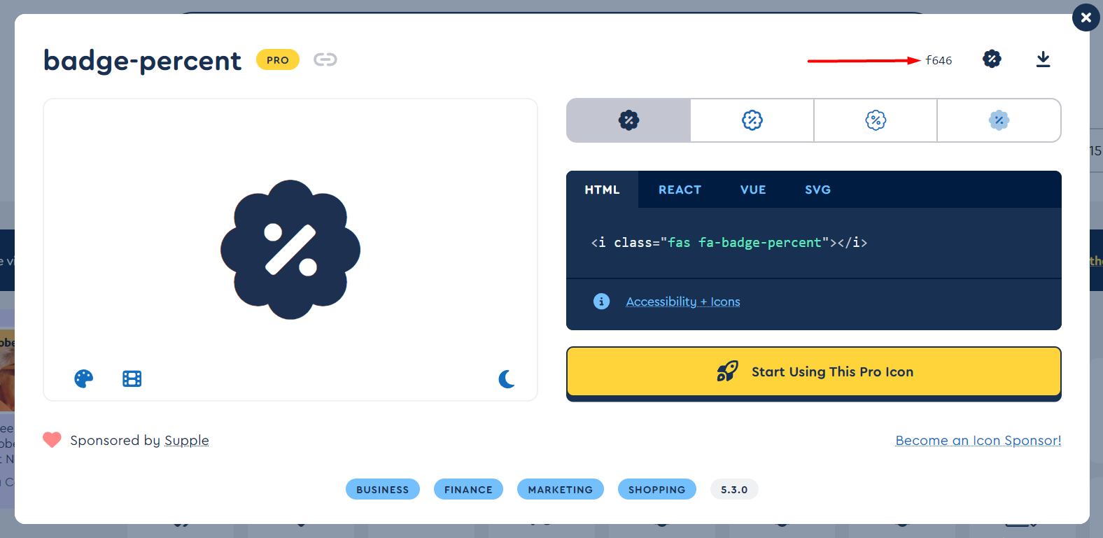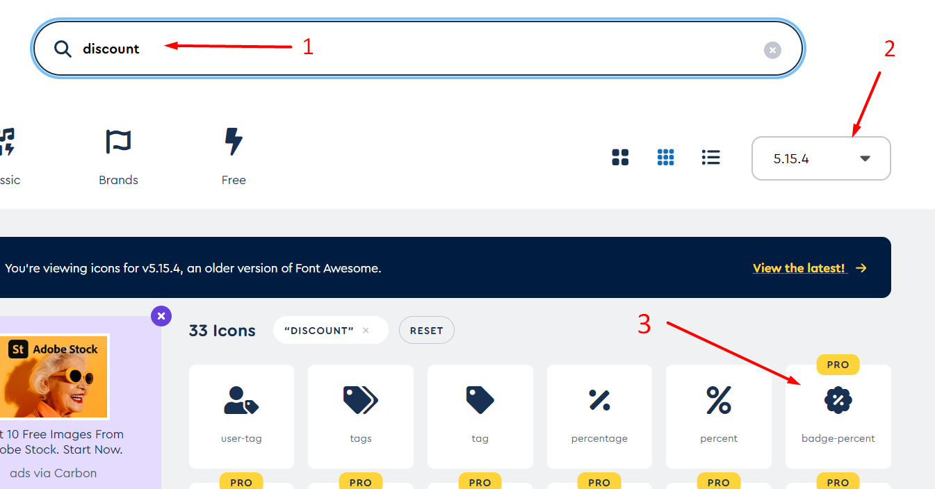 5 Код иконки можно взять с сайта fontawesome.com (использовать можно только 5ую версию). Введите в поиске название иконки и выберите подходящую: