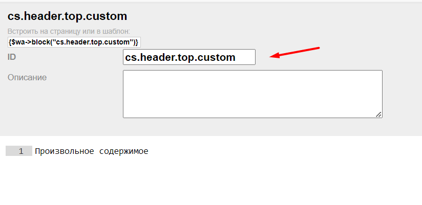 Для этого перейдите в приложение Сайт - Блоки, создайте блок с id cs.header.top.custom: