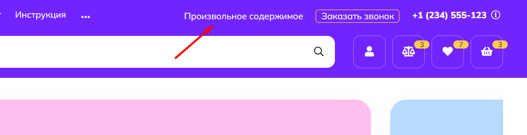 В шапке сайта есть возможность вывести блок с произвольным содержимым:
