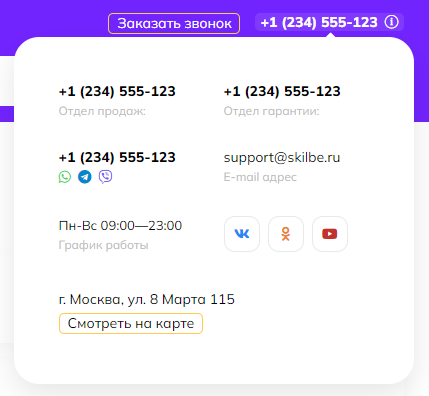 Пример блока с номером телефона:
