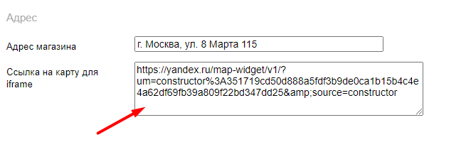 Из содержимого фрейма скопируйте значение атрибута src и вставьте в опцию Ссылка на карту для iframe