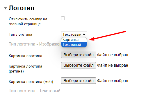 Для текстового логотипа название заполняется в следующих опциях: