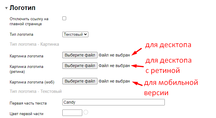 Для ретина дисплеев и мобильной версии логотип можно не загружать, по умолчанию будет отображаться логотип для десктопной версии.