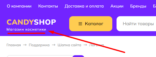 В десктопной версии под логотипом можно вывести подпись (слоган):